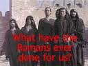 The 1979 movie “Life of Brian” featured the Pythons as “Jewish occupy-ees” in the catacombs grouchily debating the merits of Roman rule. The refrain “what have the Romans ever done for us” (soon to be echoed in “what has Obama and his pragmatic progressives done for us?”) is answered by tentative Jewish malcontents under Roman rule in Jerusalem venturing (in very British non Hebrew English): “the aqueduct, sanitation, roads, irrigation, medicine, education, wine, baths, safety to walk the streets, order, Peace”. http://www.youtube.com/watch?v=9foi342LXQE .