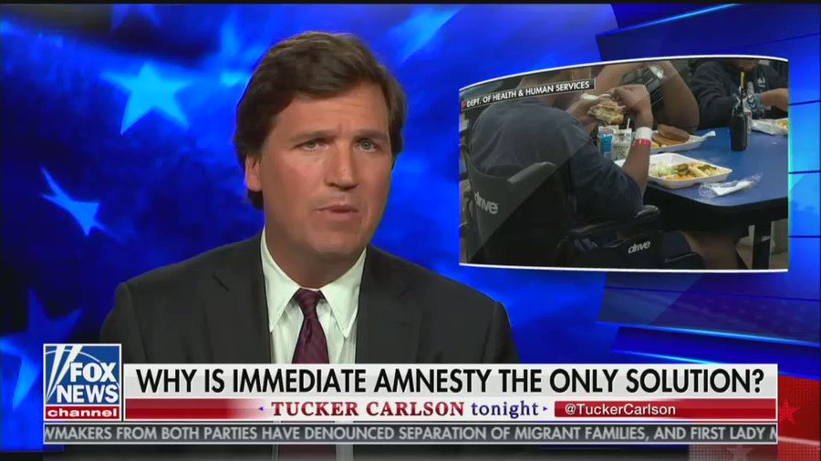 But, it was the evening and night time line-up that provided the best of the worst for Fox News. Let’s work our way through the crazy by starting with Tucker Carlson’s White Supremacy Power Hour. Carlson has really unleashed his racism since Donald Trump was elected and last night it was on full display as he went back and forth between dismissing critics of this border cruelty because many of the people publicly decrying this policy probably “don’t even have kids” (what?) and complaining “their goal is to change your country forever.” It doesn’t take a genius to decipher Tucker’s message to his white audience.